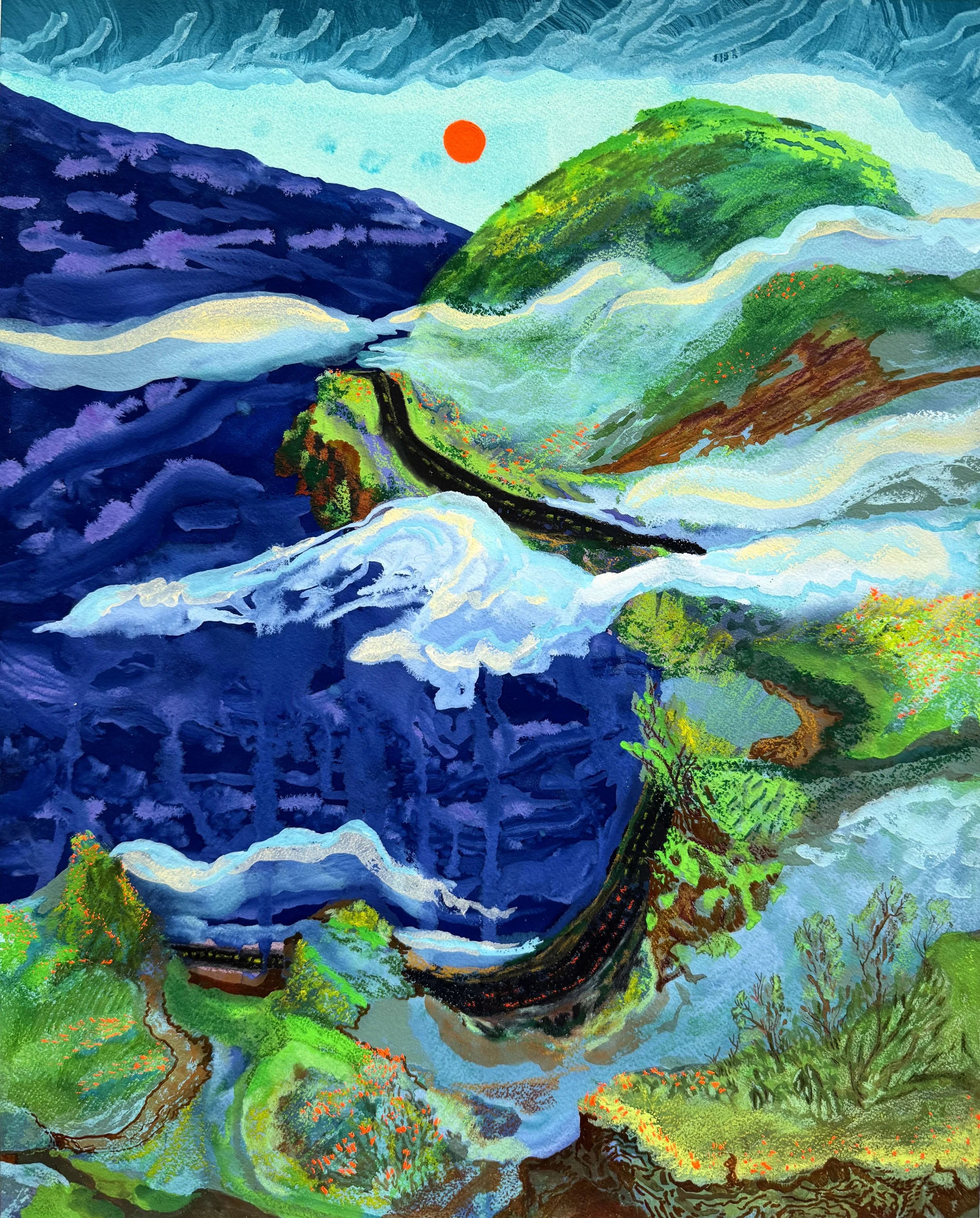 HWY 1 Big Sur, 16x20inches, mixed media on paper, 2025.